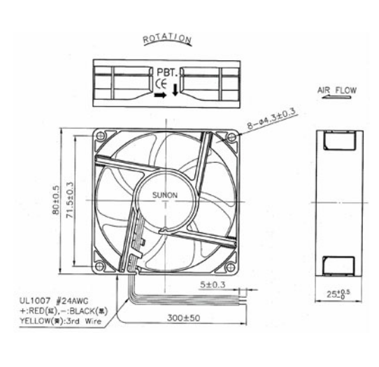 Ventilador 80x80x25mm 24V 0,166A 3,99W (3 Fios) - SUNON